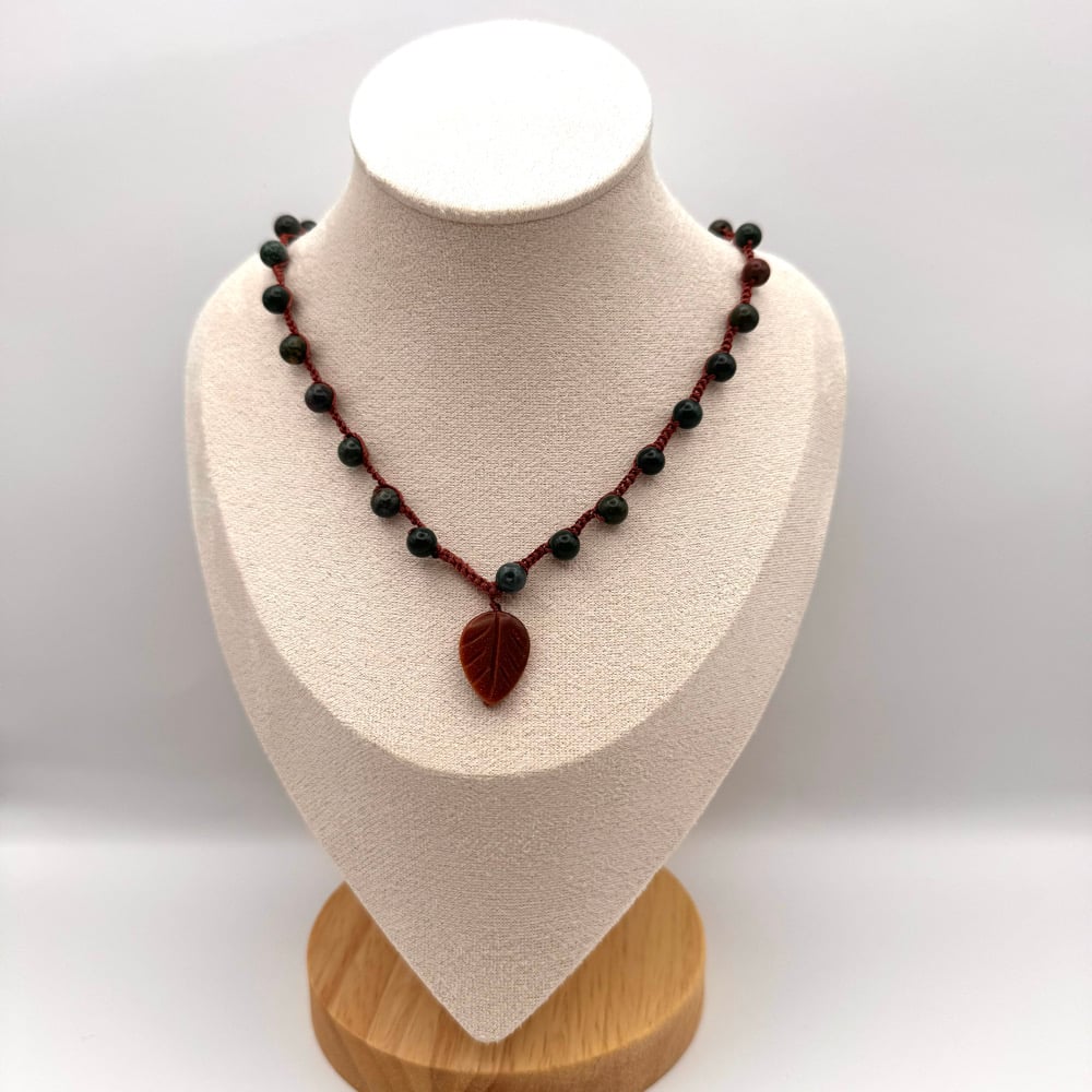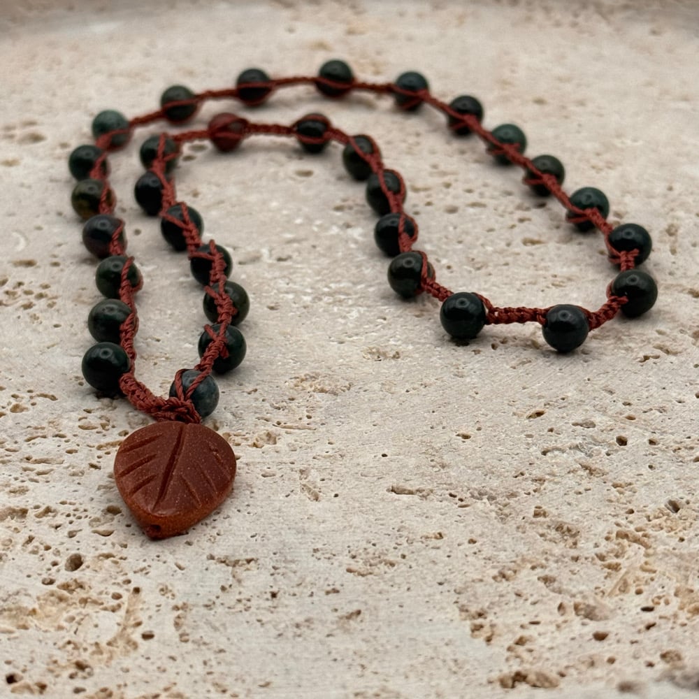 Bloodstone & Goldstone Leaf Necklace