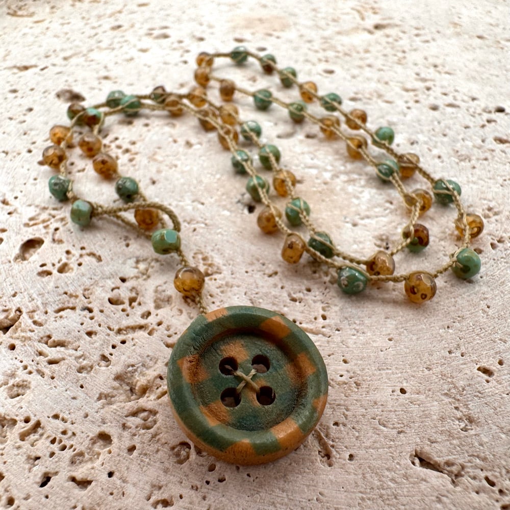 Boho Gingham Button Necklace