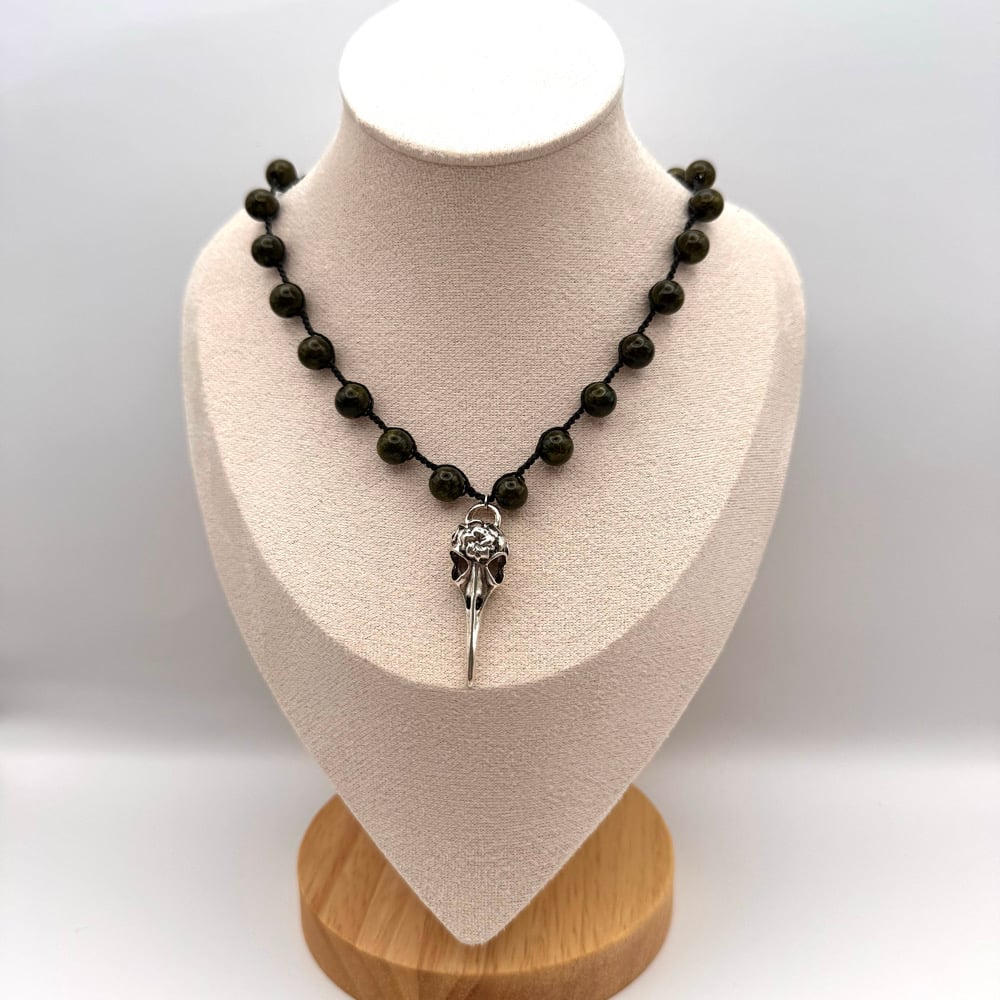 Green Quartz Bird Skull Necklace