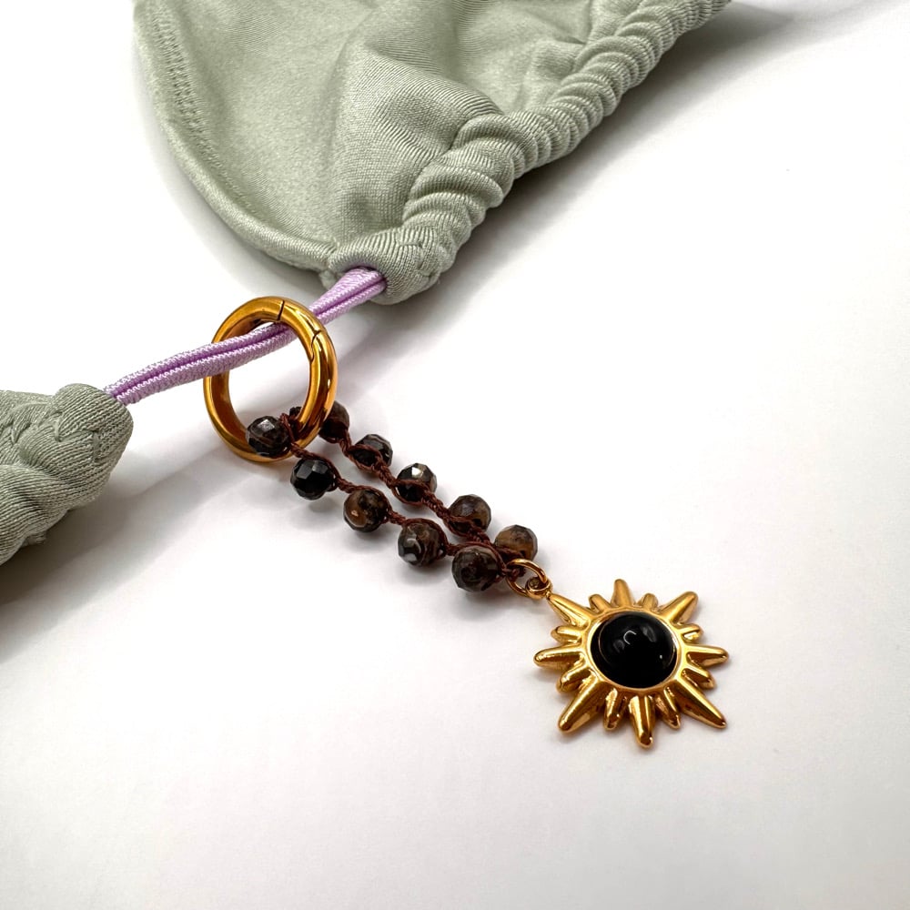 - 316L surgical grade stainless steel coated in 18k gold PVD sunburst charm with black stone