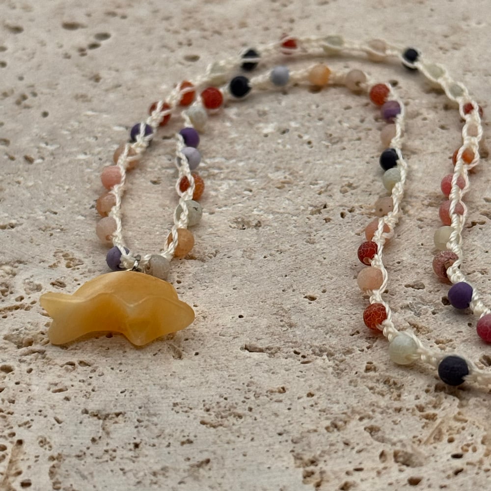 Yellow Crackle Agate Dolphin Necklace